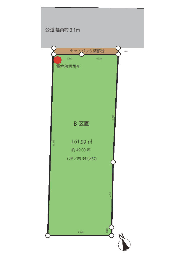 接道状況 セットバック要5.96㎥ 北3.1m 公道 接面7.6m 地勢:平坦
